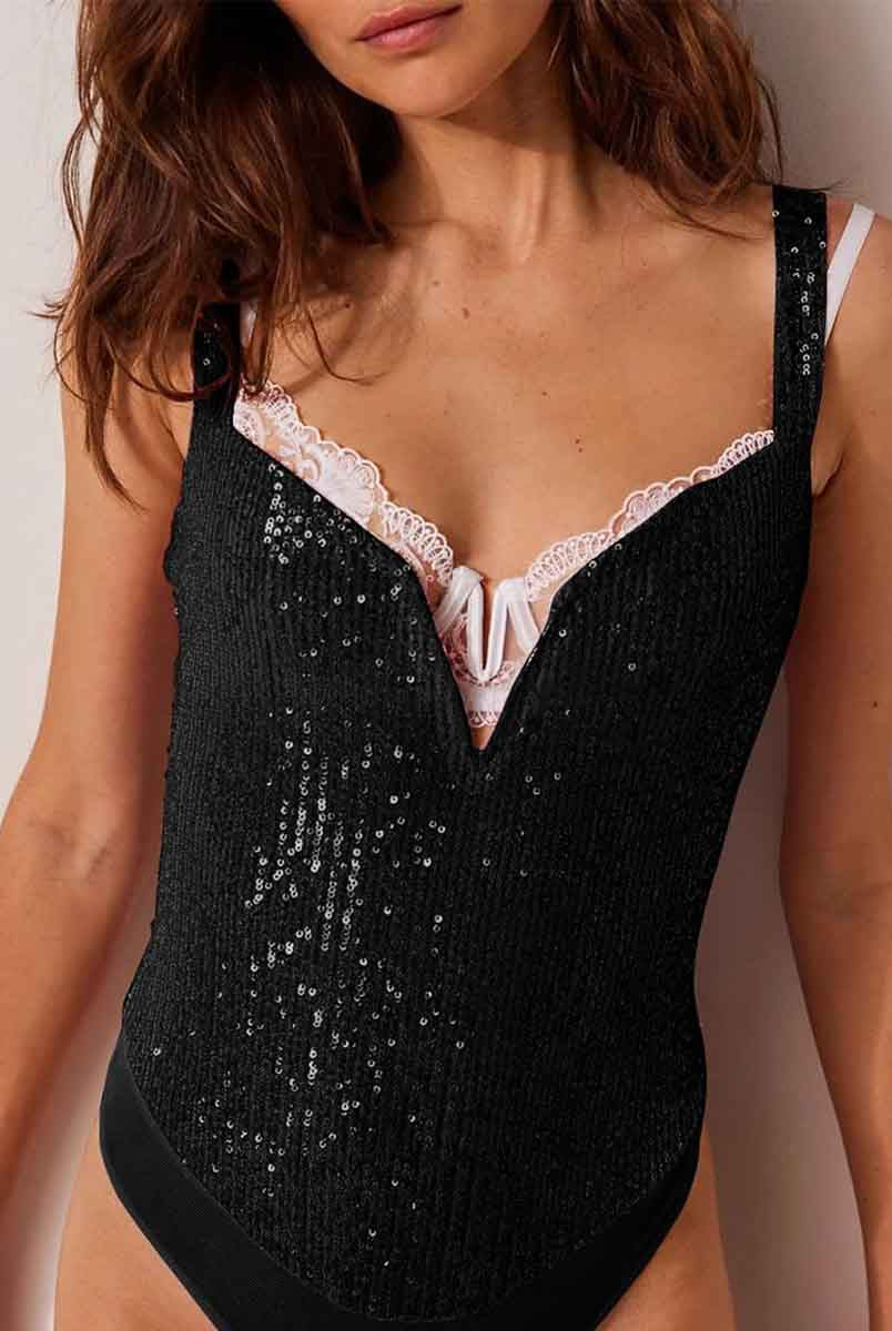 In addition, VICTRAY’s collection of fashionable sequin bodysuits also features: