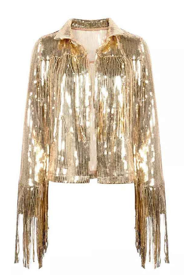 The sequin jacket, a classic fashion symbol, will make you the center of attention on the street whether the spring flowers are blooming or the autumn wind is blowing. Not only will it keep you on the cutting edge of fashion throughout the seasons, but with its sparkling sequins and chic design, it's the perfect choice to take your place on the fashion throne. With the flash of sequins, your personality and confidence will shine like the brightest star in the night sky.