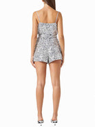 Sleeveless Suspender Silver Sequin Jumpsuit Shorts